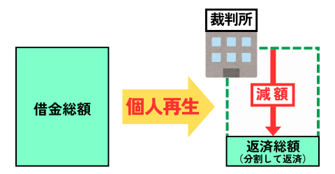 個人再生とは、裁判所に申し立てて認められると、借金総額を100万円を限度に最大5分の1まで軽減した金額を、分割して支払ってゆく手続きです。